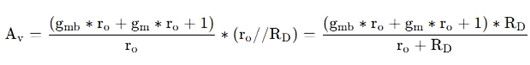 所以,綜上所述,整個由于背柵電壓引起的增益之和為( g m b ? r o + g m ? r o + 1 ) 。