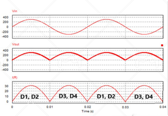 通過橋式整流的工作方式(上面已經(jīng)提到),MOSFET橋式整流器可以將輸入的交流電轉(zhuǎn)換為直流電,并且輸出電壓的紋波較小,效率較高。