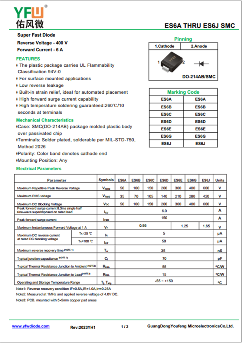 佑風(fēng)微原廠超快恢復(fù)二極管ES6B中文資料,PDF數(shù)據(jù)手冊(cè),引腳圖,封裝規(guī)格,廠家原廠,找ES6B上佑風(fēng)微電子官網(wǎng)
