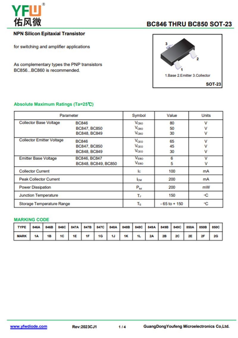 佑風(fēng)微原廠三極管BC848C中文資料,PDF數(shù)據(jù)手冊,引腳圖,封裝規(guī)格,廠家原廠,找BC848C上佑風(fēng)微電子官網(wǎng)