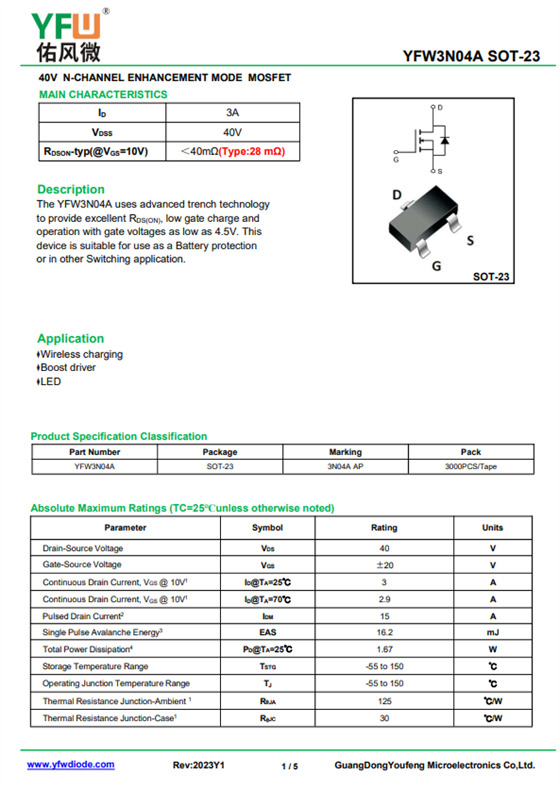 佑風(fēng)微原廠N溝-MOS YFW3N04A中文資料,PDF數(shù)據(jù)手冊,引腳圖,封裝規(guī)格,廠家原廠,找YFW3N04A上佑風(fēng)微電子官網(wǎng)