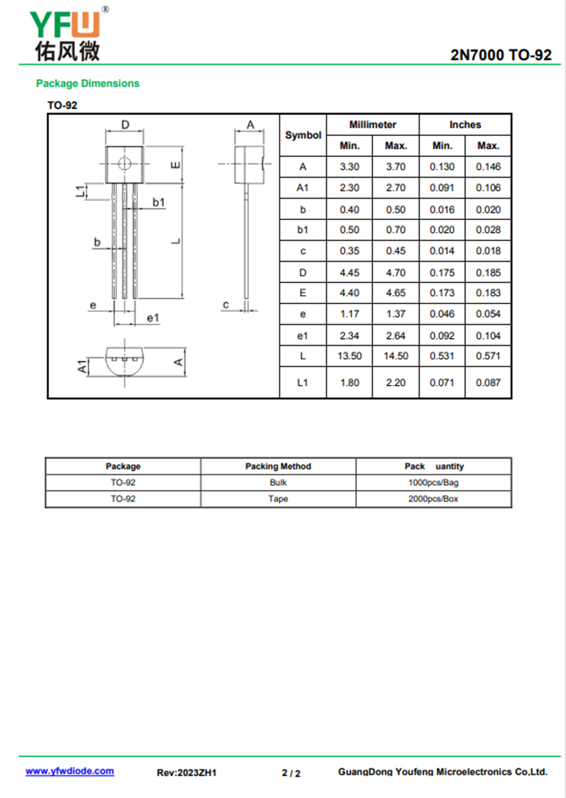 佑風(fēng)微原廠場效應(yīng)管2N7000中文資料,PDF數(shù)據(jù)手冊,引腳圖,封裝規(guī)格,廠家原廠,找2N7000上佑風(fēng)微電子官網(wǎng)
