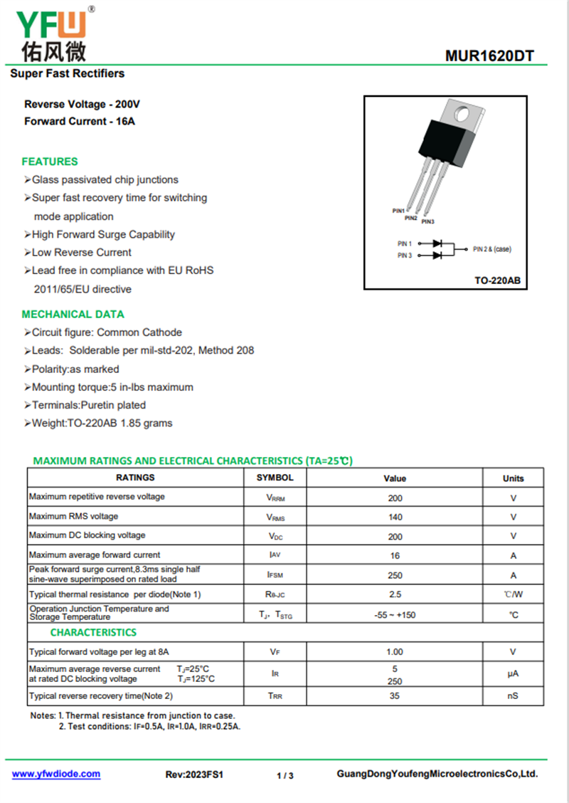 佑風(fēng)微原廠超快恢復(fù)二極管MUR1620DT中文資料,PDF數(shù)據(jù)手冊,引腳圖,封裝規(guī)格,廠家原廠,找MUR1620DT上佑風(fēng)微電子官網(wǎng)
