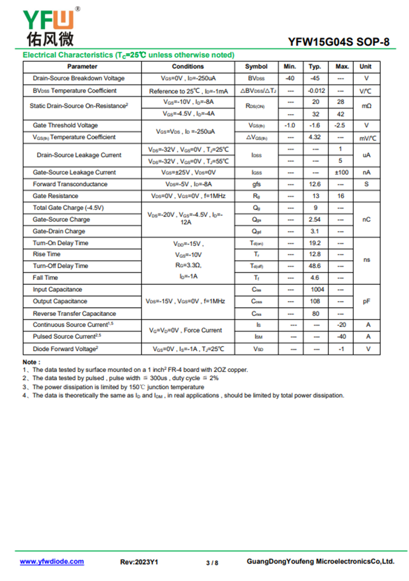 佑風(fēng)微原廠N+P-MOS YFW15G04S中文資料,PDF數(shù)據(jù)手冊,引腳圖,封裝規(guī)格,廠家原廠,找YFW15G04S上佑風(fēng)微電子官網(wǎng)