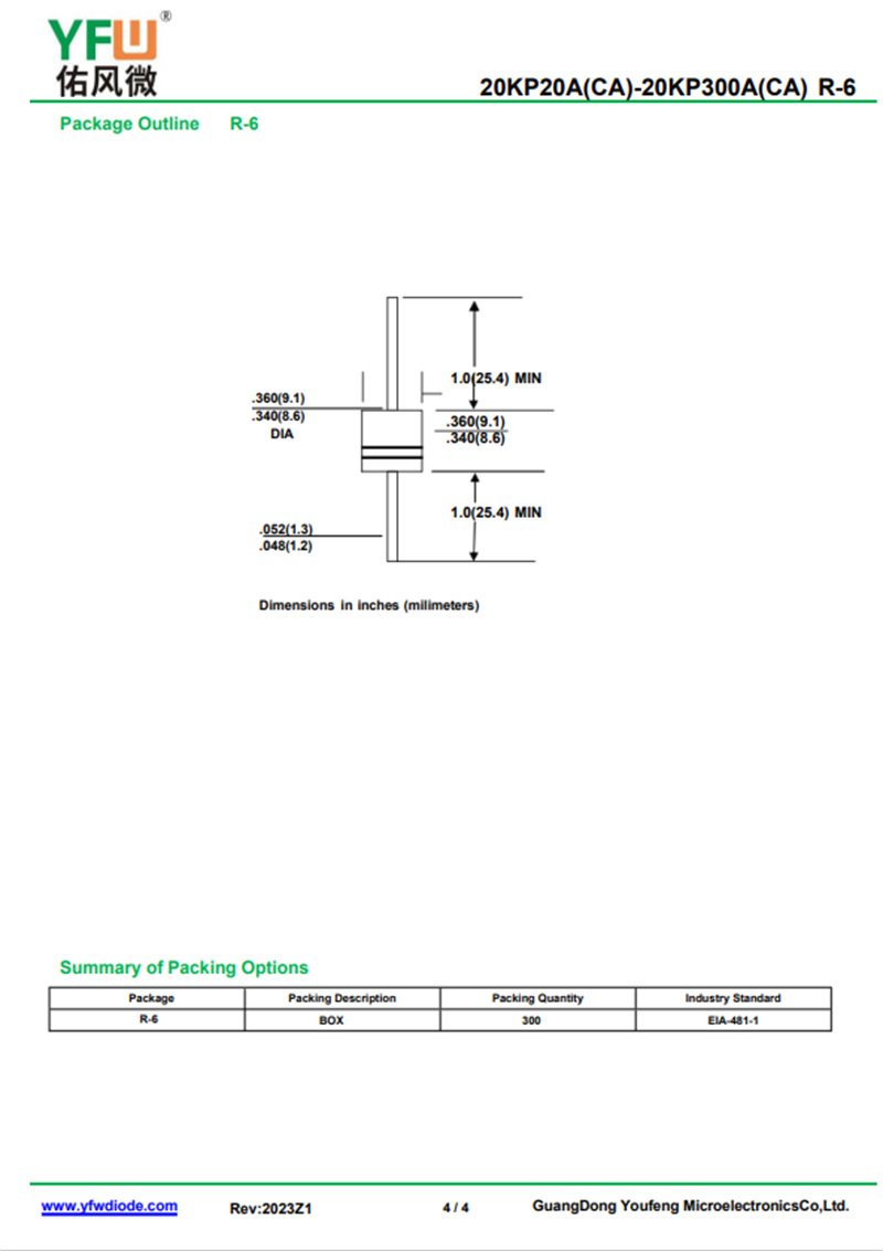 3KP200A R-6 瞬態(tài)抑制二極管YFW佑風(fēng)微