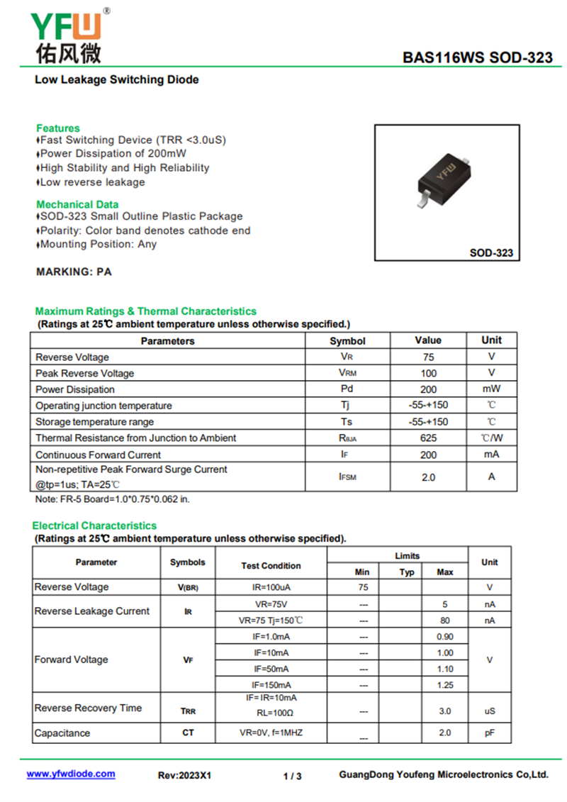 佑風(fēng)微原廠開關(guān)二極管 BAS116WS中文資料,PDF數(shù)據(jù)手冊,引腳圖,封裝規(guī)格,廠家原廠,找BAS116WS上佑風(fēng)微電子官網(wǎng)