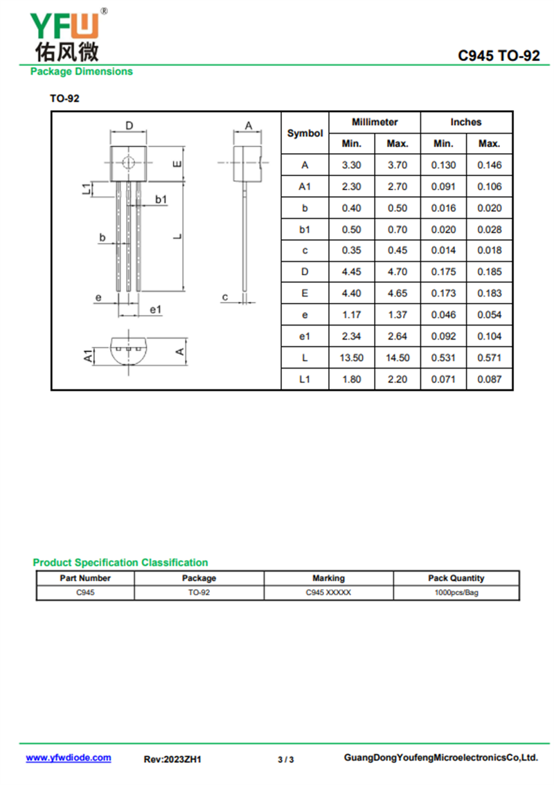 佑風微原廠三極管C945中文資料,PDF數(shù)據(jù)手冊,引腳圖,封裝規(guī)格,廠家原廠,找C945上佑風微電子官網(wǎng)