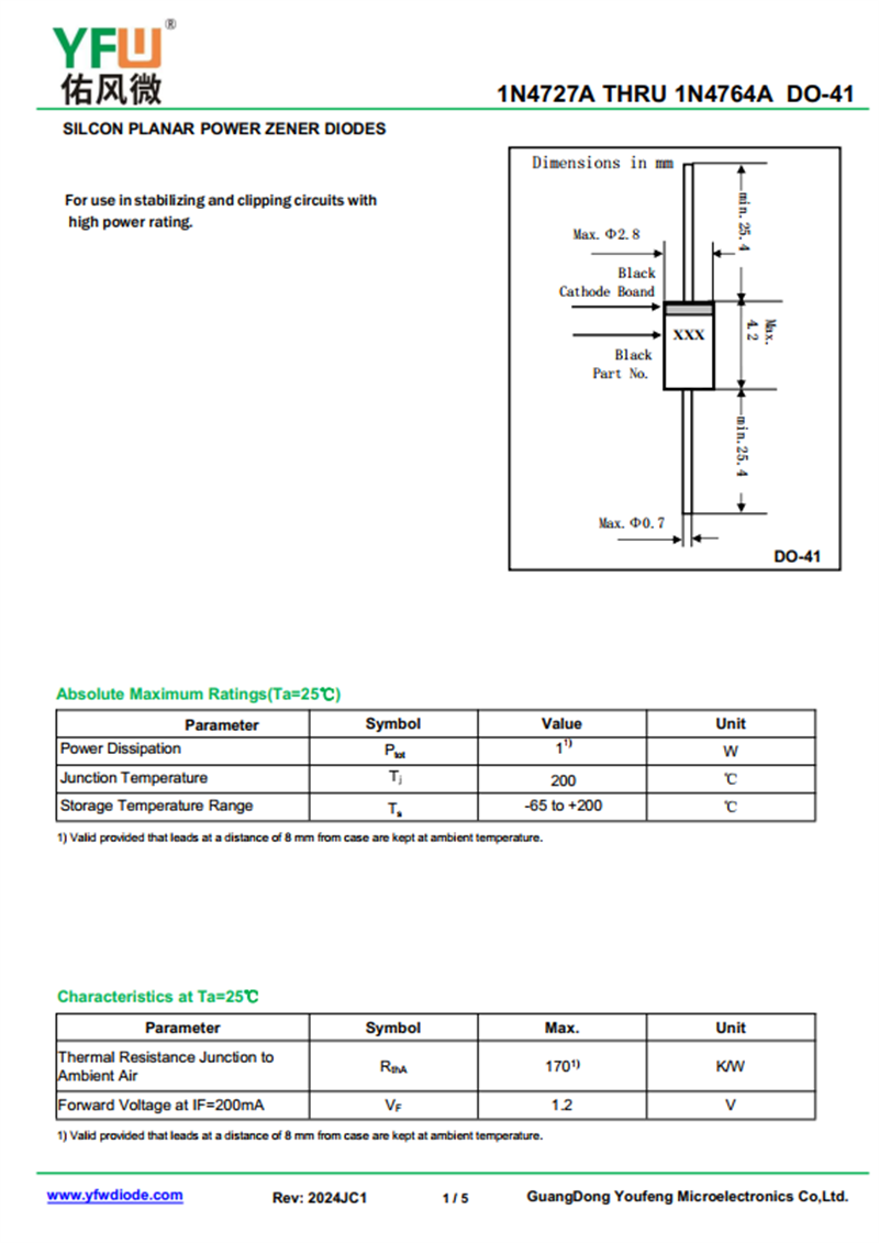 佑風微原廠 穩(wěn)壓二極管1N4755A中文資料,PDF數(shù)據(jù)手冊,引腳圖,封裝規(guī)格,廠家原廠,找1N4755A上佑風微電子官網(wǎng)