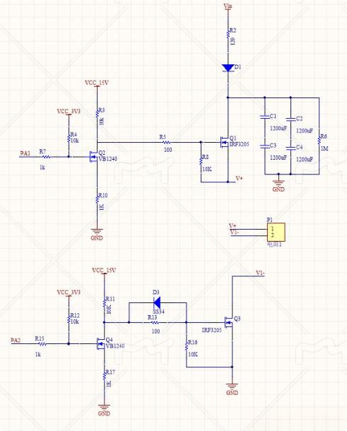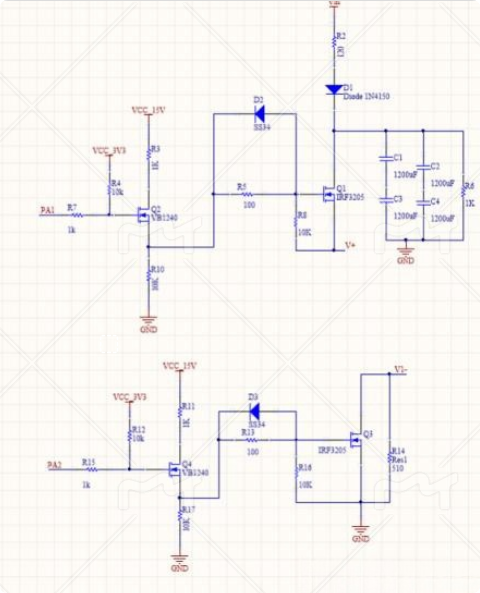 目的:IO口控制第一個(gè)MOS管通斷來(lái)實(shí)現(xiàn)第二個(gè)MOS管柵極是否有15v加上繼而控制第二個(gè)MOS的快速通斷。