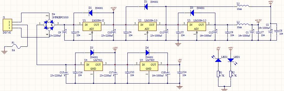 整流二極管電路中主要是防止輸入端電壓突然降低或不慎短路,及時將輸出端大電容的電荷釋放掉,從而保護三端穩(wěn)壓器不被擊穿。
