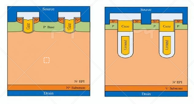 (Trench MOS和SGT MOS器件結(jié)構(gòu)圖)