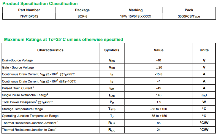 yfwdiode,MOSFEL YFW15P04S data,PDF data book,Pin figure,Packaging specifications,Diode manufacturer YFW15P04S diode