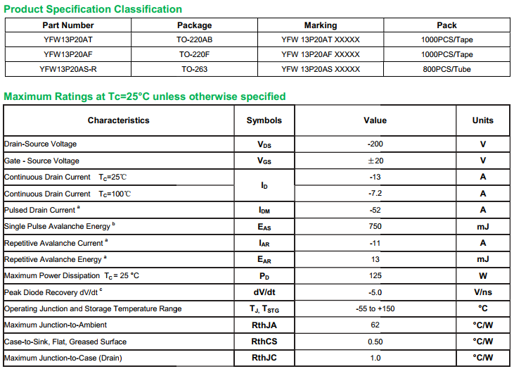 yfwdiode,MOSFEL YFW13P20AT data,PDF data book,Pin figure,Packaging specifications,Diode manufacturer YFW13P20AT diode