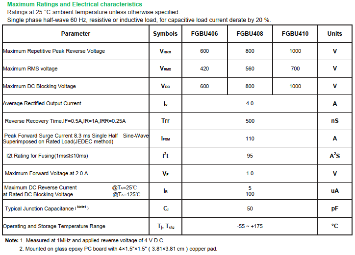 yfwdiode,Fast Recovery Rectifier Bridge FGBU406 data,PDF data book,Pin figure,Packaging specifications,Diode manufacturer FGBU406 diode