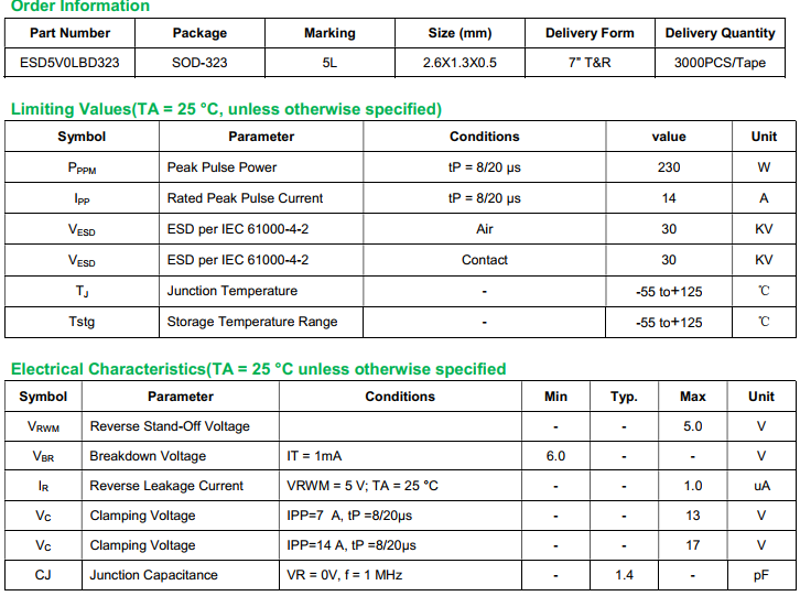 yfwdiode,ESD Protection Diode ESD5V0LBD323 data,PDF data book,Pin figure,Packaging specifications,Diode manufacturer ESD5V0LBD323 diode