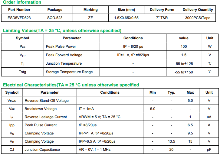 yfwdiode,Transient Voltage Suppressor ESD5VFD523 data,PDF data book,Pin figure,Packaging specifications,Diode manufacturer ESD5VFD523 diode