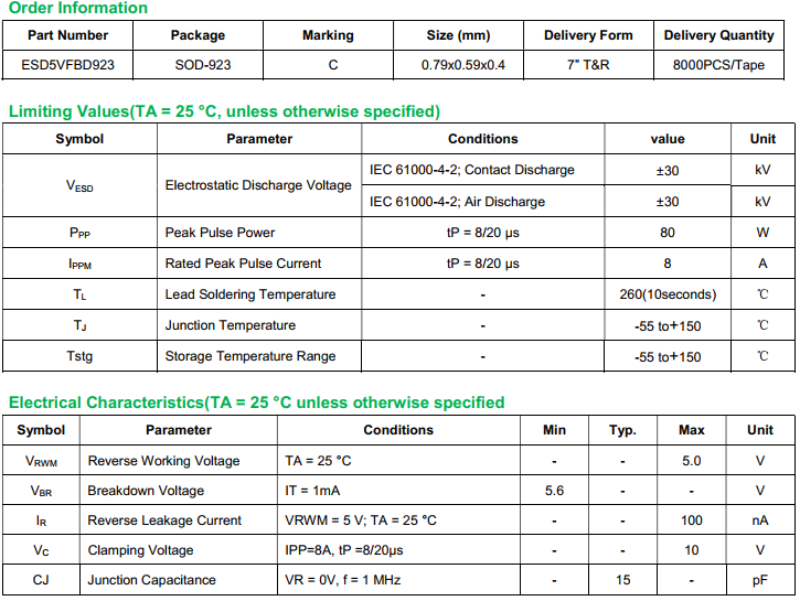 ESD5VFBD923 data,PDF data book,Pin figure,Packaging specifications,Diode manufacturer ESD5VFBD923 diode