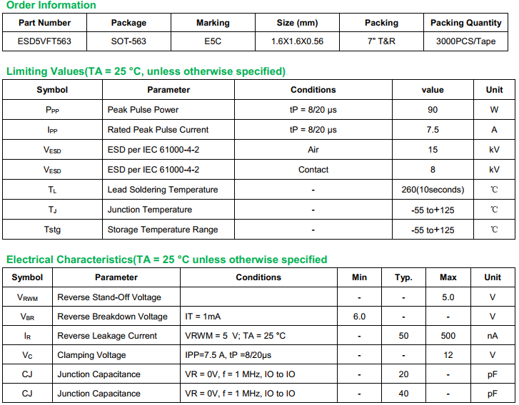 yfwdiode,ESD Protection Diode ESD5VFT563 data,PDF data book,Pin figure,Packaging specifications,Diode manufacturer ESD5VFT563 diode