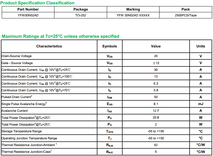 yfwdiode,Mosfet YFW30N02AD data,PDF data book,Pin figure,Packaging specifications,Diode manufacturer YFW30N02AD diode