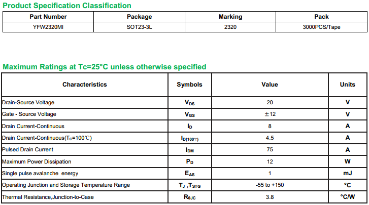 yfwdiode,Mosfet YFW2320MI data,PDF data book,Pin figure,Packaging specifications,Diode manufacturer YFW2320MI diode