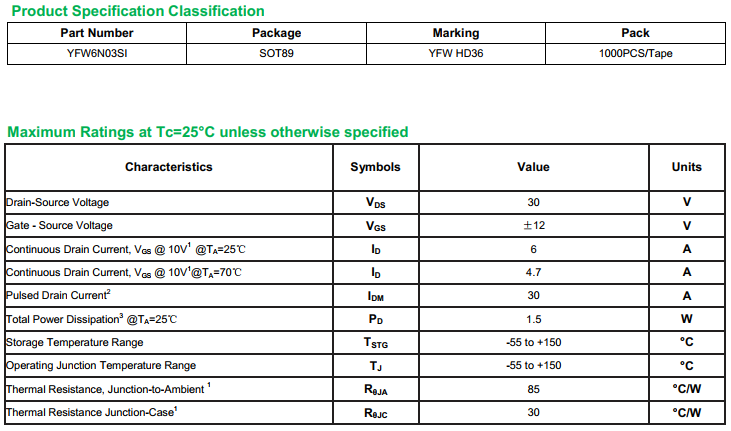 yfwdiode,Mosfet YFW6N03LI data,PDF data book,Pin figure,Packaging specifications,Diode manufacturer YFW6N03LI diode