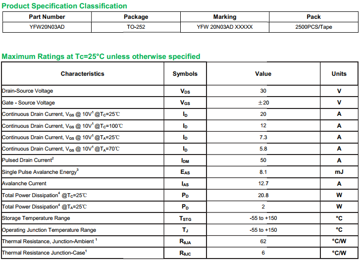 yfwdiode,Mosfet YFW20N03AD data,PDF data book,Pin figure,Packaging specifications,Diode manufacturer YFW20N03AD diode