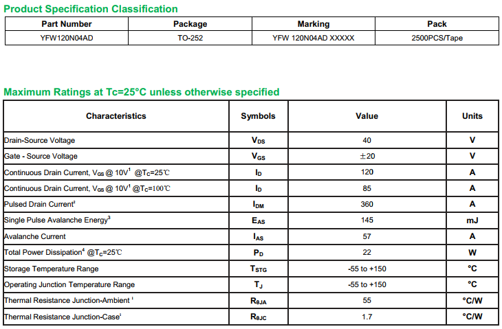yfwdiode,Mosfet YFW120N04AD data,PDF data book,Pin figure,Packaging specifications,Diode manufacturer YFW120N04AD diode