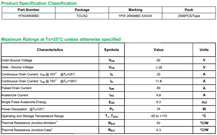 yfwdiode,Mosfet YFW20N06BD data,PDF data book,Pin figure,Packaging specifications,Diode manufacturer YFW20N06BD diode