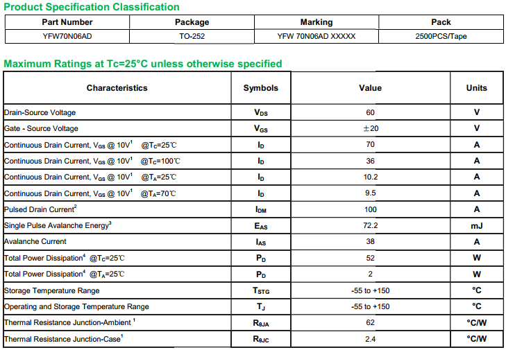 yfwdiode,Mosfet YFW70N06AD data,PDF data book,Pin figure,Packaging specifications,Diode manufacturer YFW70N06AD diode