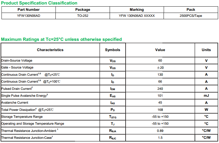 yfwdiode,Mosfet YFW130N06AD data,PDF data book,Pin figure,Packaging specifications,Diode manufacturer YFW130N06AD diode