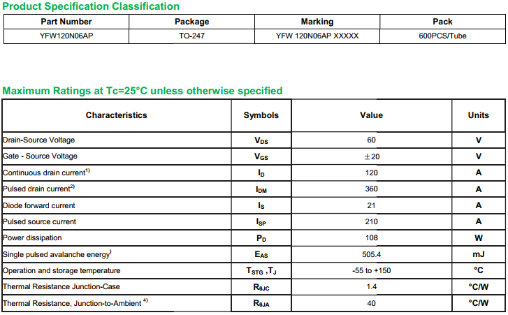 yfwdiode,Mosfet YFW120N06AP data,PDF data book,Pin figure,Packaging specifications,Diode manufacturer YFW120N06AP diode