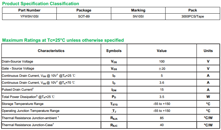 yfwdiode,Mosfet YFW5N10SI data,PDF data book,Pin figure,Packaging specifications,Diode manufacturer YFW5N10SI diode