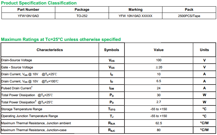yfwdiode,Mosfet YFW10N10AD data,PDF data book,Pin figure,Packaging specifications,Diode manufacturer YFW10N10AD diode
