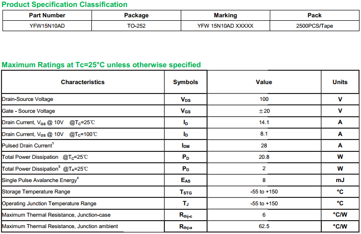 yfwdiode,Mosfet YFW15N10AD data,PDF data book,Pin figure,Packaging specifications,Diode manufacturer YFW15N10AD diode