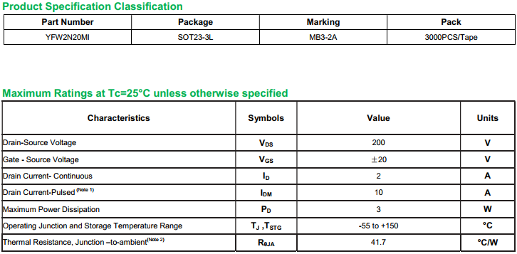 yfwdiode,Mosfet YFW2N20MI data,PDF data book,Pin figure,Packaging specifications,Diode manufacturer YFW2N20MI diode
