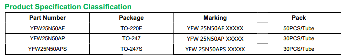 yfwdiode,Mosfet YFW25N50AP data,PDF data book,Pin figure,Packaging specifications,Diode manufacturer YFW25N50AP diode