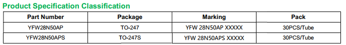 yfwdiode,Mosfet YFW28N50AP data,PDF data book,Pin figure,Packaging specifications,Diode manufacturer YFW28N50AP diode