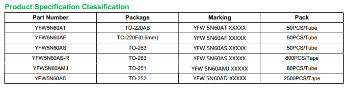 yfwdiode,Mosfet YFW5N60AMJ data,PDF data book,Pin figure,Packaging specifications,Diode manufacturer YFW5N60AMJ diode