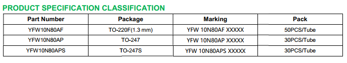 yfwdiode,Mosfet YFW10N80APS data,PDF data book,Pin figure,Packaging specifications,Diode manufacturer YFW10N80APS diode