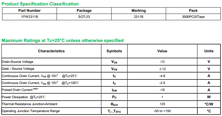 yfwdiode,Mosfet YFW2311B data,PDF data book,Pin figure,Packaging specifications,Diode manufacturer YFW2311B diode
