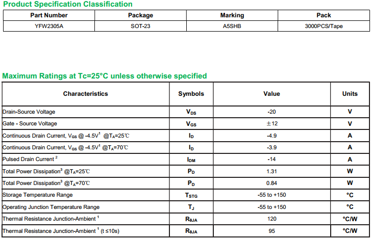 yfwdiode,Mosfet YFW2305A data,PDF data book,Pin figure,Packaging specifications,Diode manufacturer YFW2305A diode