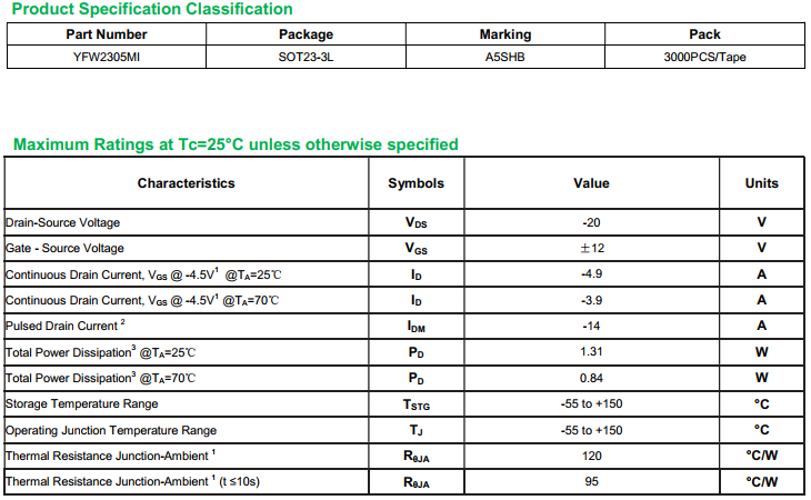 yfwdiode,Mosfet YFW2305MI data,PDF data book,Pin figure,Packaging specifications,Diode manufacturer YFW2305MI diode