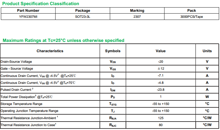 yfwdiode,Mosfet YFW2307MI data,PDF data book,Pin figure,Packaging specifications,Diode manufacturer YFW2307MI diode