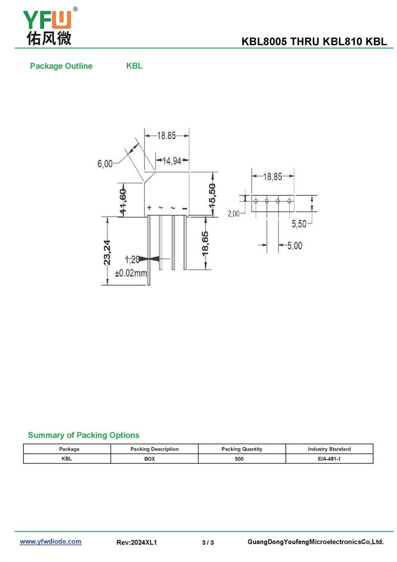 yfwdiode,Bridge Rectifier KBL810 data,PDF data book,Pin figure,Packaging specifications,Diode manufacturer KBL810 diode