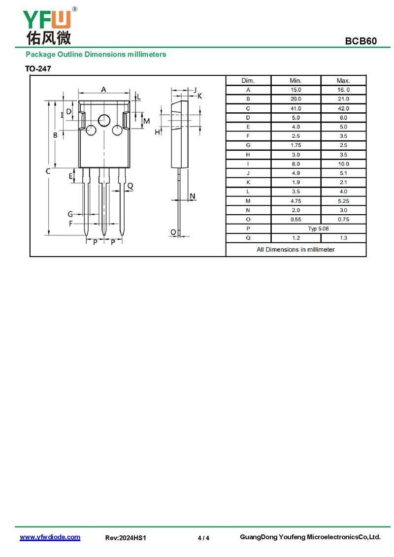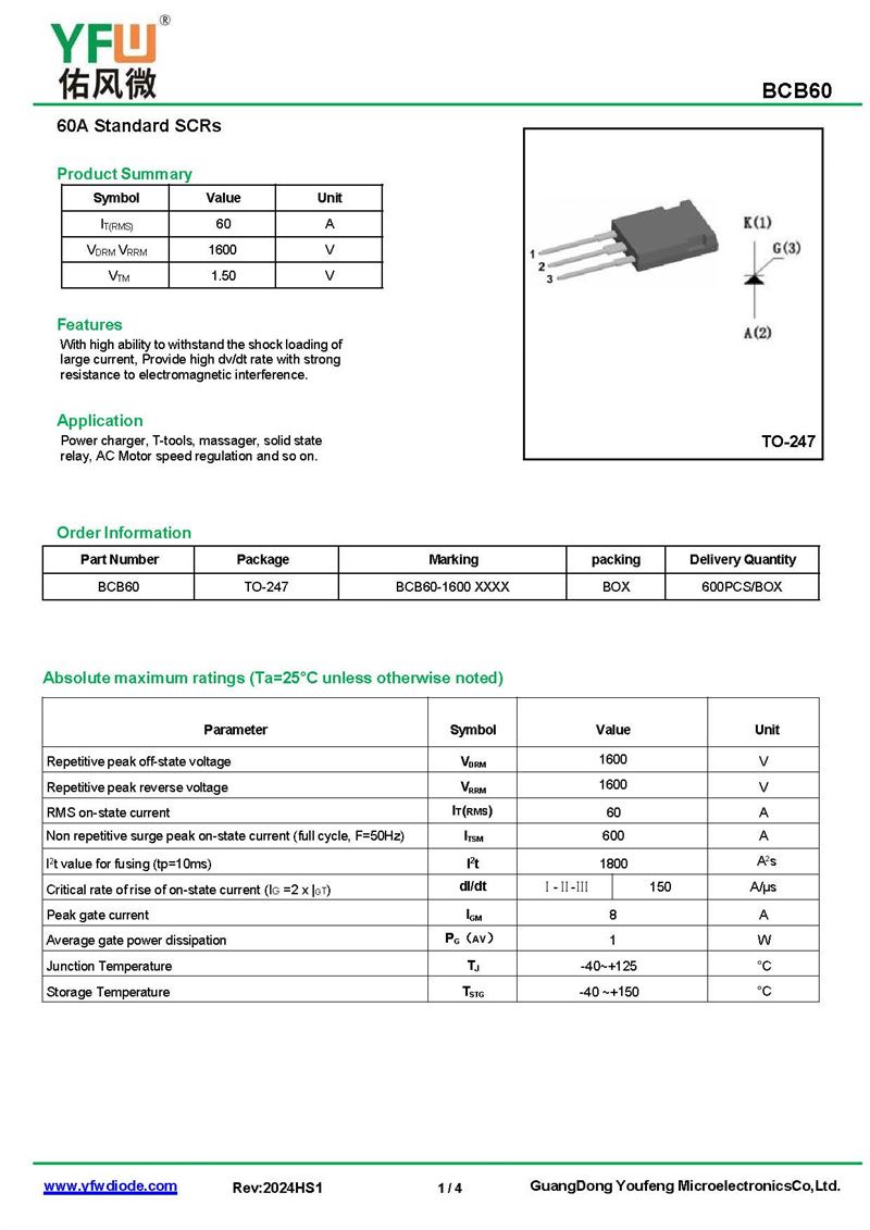 yfwdiode,Thyristor BCB60 data,PDF data book,Pin figure,Packaging specifications,Diode manufacturer BCB60 diode