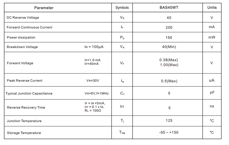 yfwdiode,Switching Diode BAS40WT data,PDF data book,Pin figure,Packaging specifications,Diode manufacturer BAS40WT diode