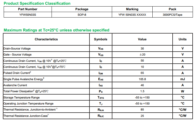 yfwdiode,MOSFEL YFW50N03S data,PDF data book,Pin figure,Packaging specifications,Diode manufacturer YFW50N03S diode
