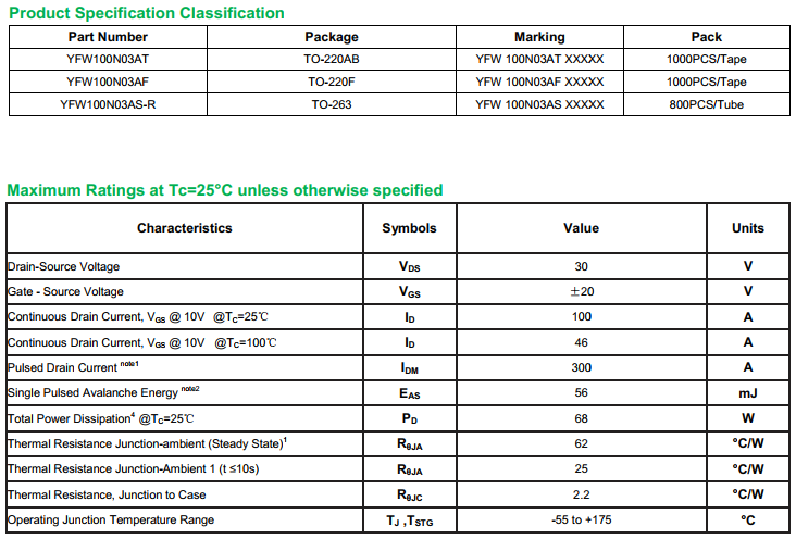 yfwdiode,MOSFEL YFW100N03AS data,PDF data book,Pin figure,Packaging specifications,Diode manufacturer YFW100N03AS diode