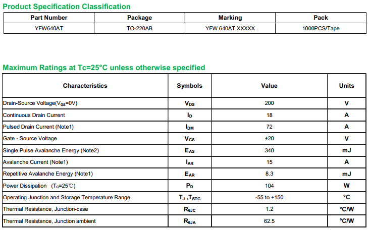 yfwdiode,MOSFEL YFW640AT data,PDF data book,Pin figure,Packaging specifications,Diode manufacturer YFW640AT diode