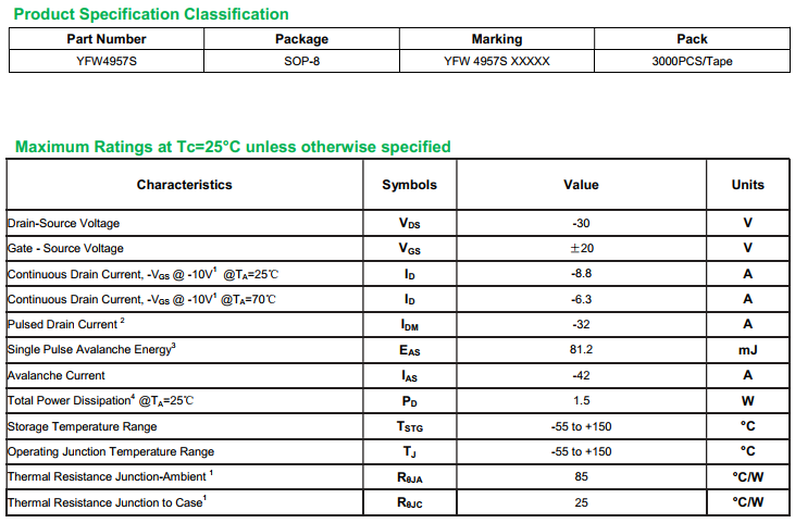 yfwdiode,MOSFEL YFW4957S data,PDF data book,Pin figure,Packaging specifications,Diode manufacturer YFW4957S diode